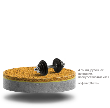 Рулонное покрытие для тренажерных залов и открытых площадок толщиной 4-12 мм |
